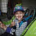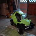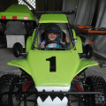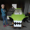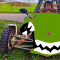 Aus rot mach grün mit Zähnen. Albin hat Sophies roten Buggy in ein „Nachwuchskrokodil“ verwandelt.